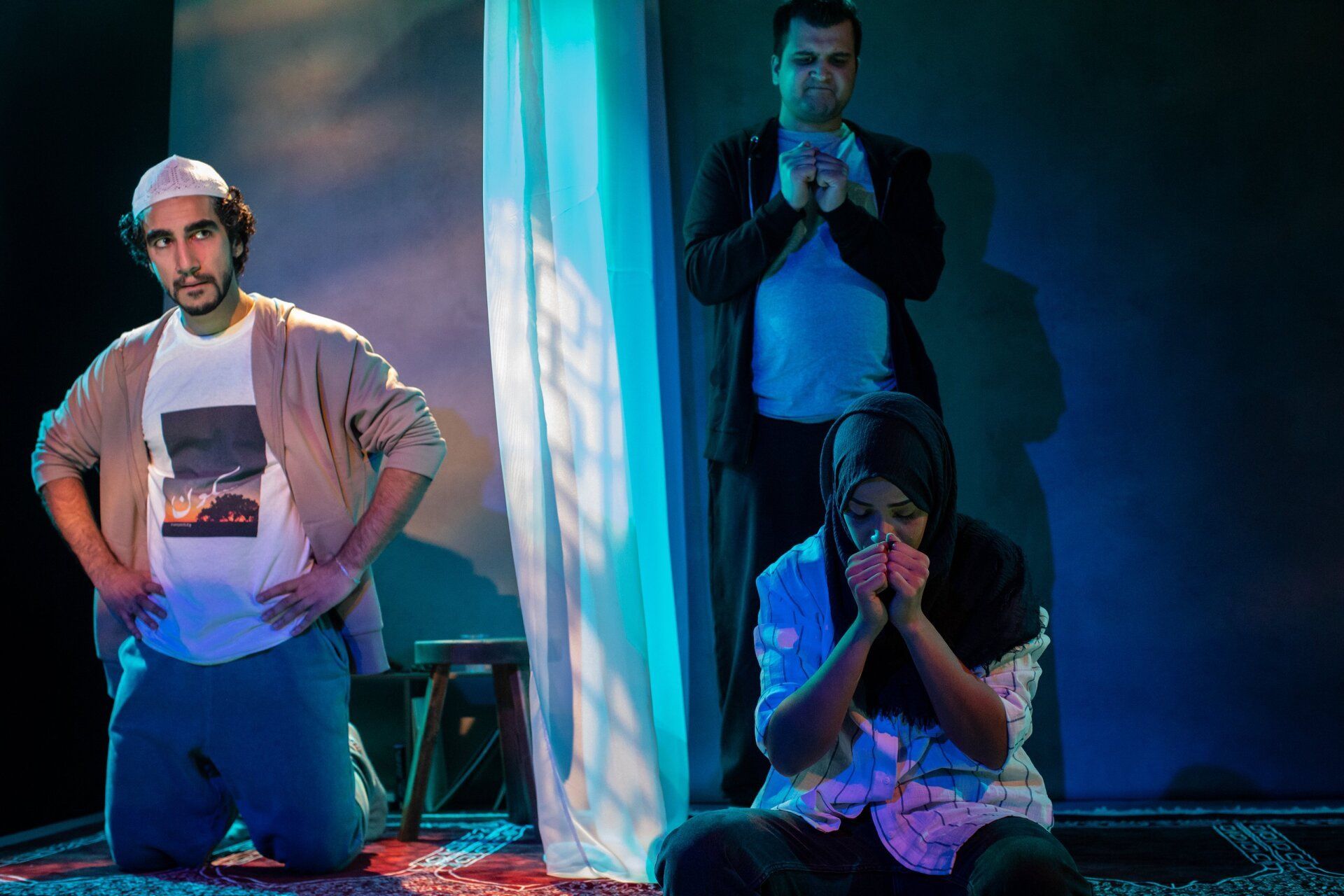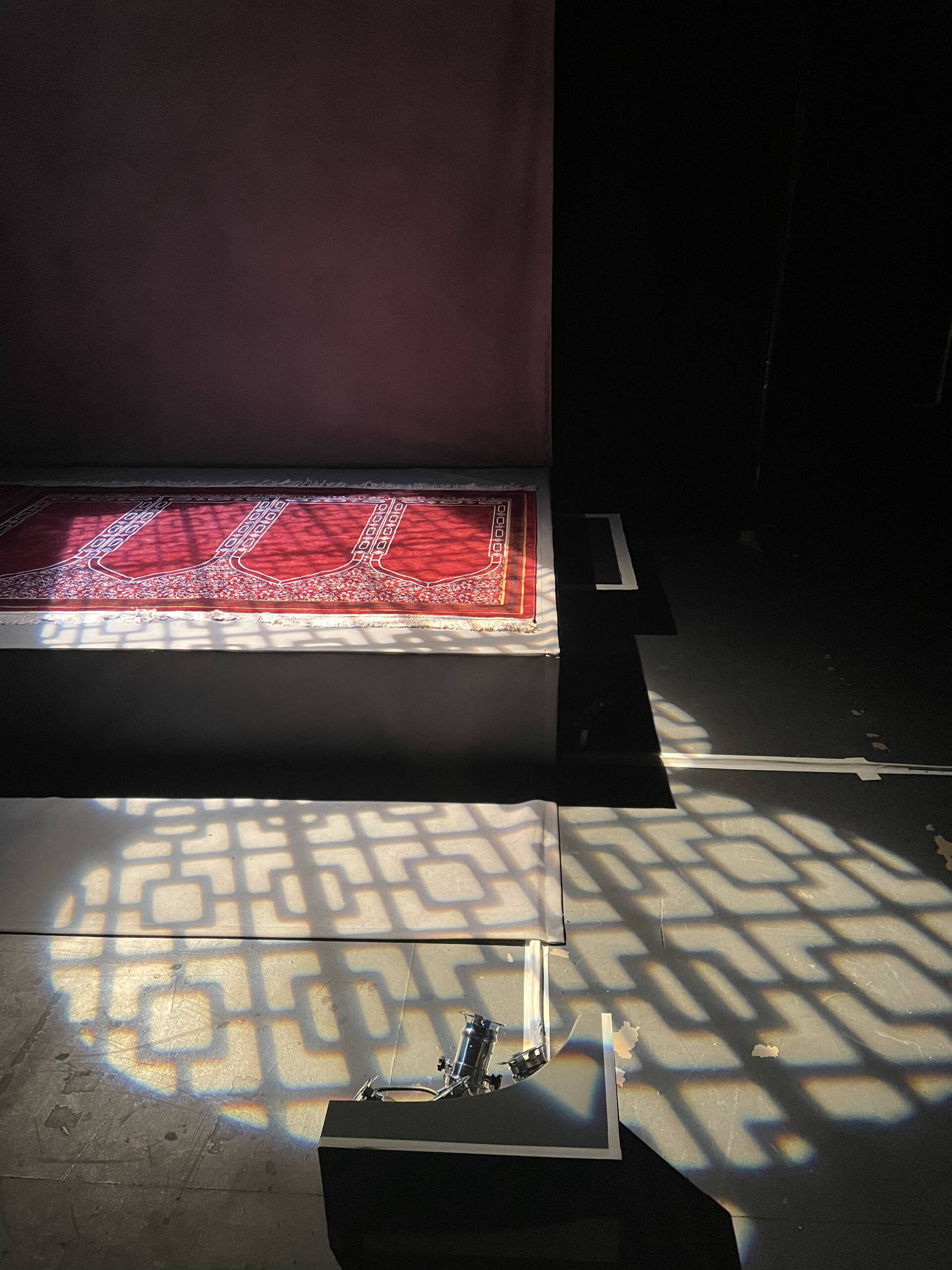 Geometric repeating patterns of traditional architecture gave inspriration for custom window gobos. Deep blues and cyans mirroring the hues of the Blue Mosque lent themselves to the spirituality of the journey via nightime scenes and the repeating theme of performing the wudu (washing ritual).