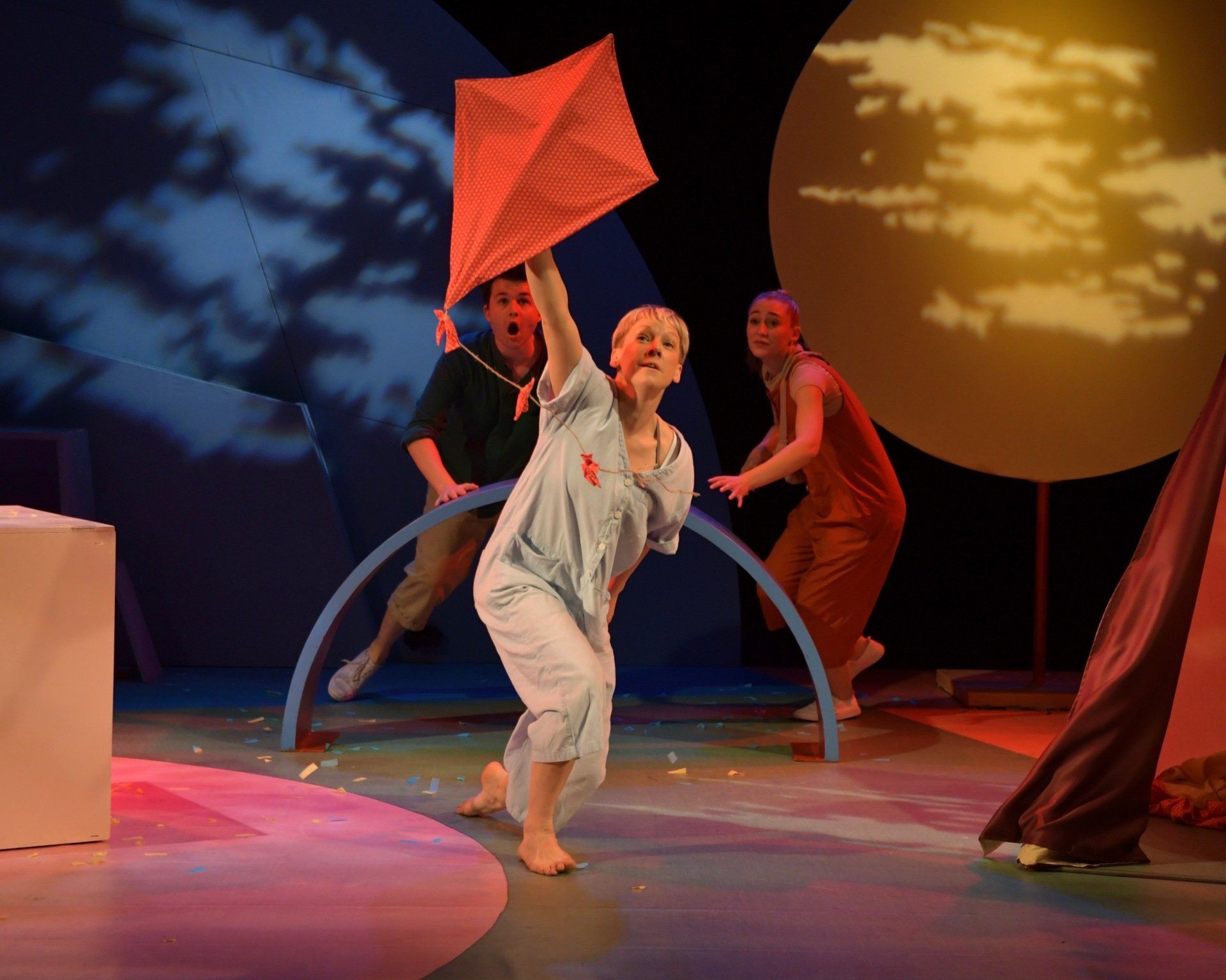 Themes of play, trust and the journey of friendship. Playful skies, a sense of flight, but with the underlying vulnerability of conflict.